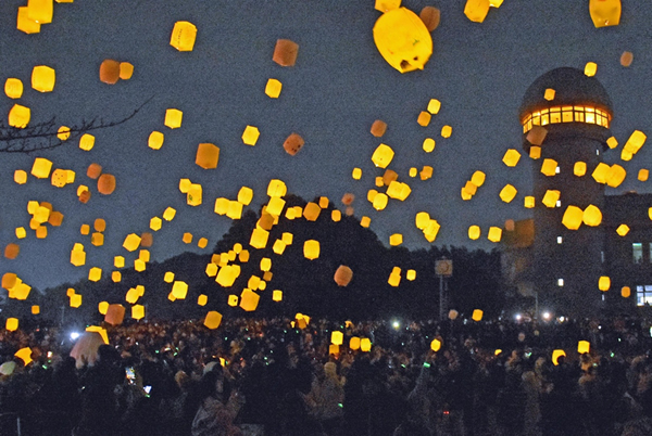 大勢の市民が集まり、思い思いの願いを書き込んだほのかなLEDライトのランタンを寒空に浮かべた。湖畔に出現した無数の小さな灯り。遠目には盛夏のホタルが乱舞しているかのようだ。