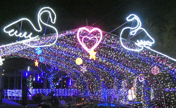 ■写真上:色とりどりの灯りが入園者を招き入れる(柏市北柏ふるさと公園)