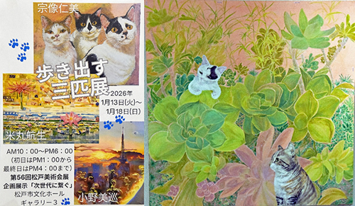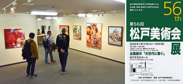 ――カフェやレストランの店頭、店内で見かける黒い板に描かれた手描き看板やメニュー。それらを作品として集めた「チョークアート2026 MiiRuArt教室展」が1月15日から柏市のパレット柏・市民ギャラリーで開かれた。