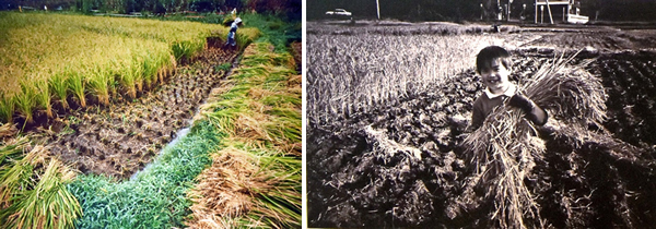 昭和後期から平成にかけて撮影されたモノクロ、カラー作品が、A1サイズのパネルに1~3枚セットされた。ファインダーを通して描かれた田園や手賀沼、そしてそこに生きる老若男女の姿。作品一つひとつに森さんの地元愛が伝わってくるようだ。
