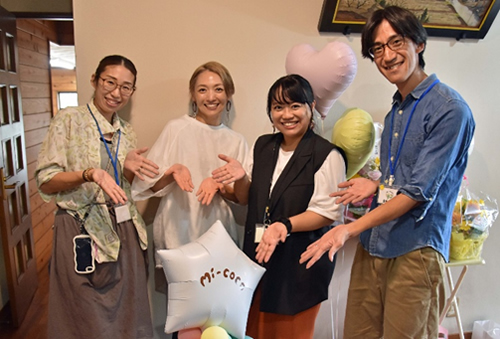 ■写真上:舞台裏で来場者に贈るミニアレンジを用意するスタッフ