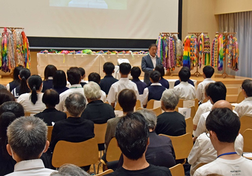 ■写真上:作品を紹介する「夢花会」の卯月彩花さん