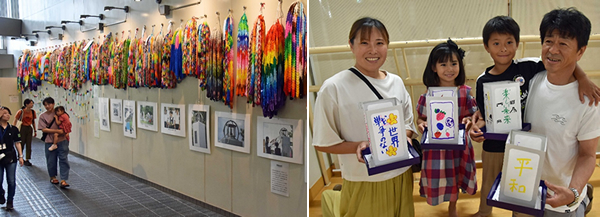 ■写真上:「夏花火」(高尾桂子)=左=などで華やかな会場を楽しむ入場客