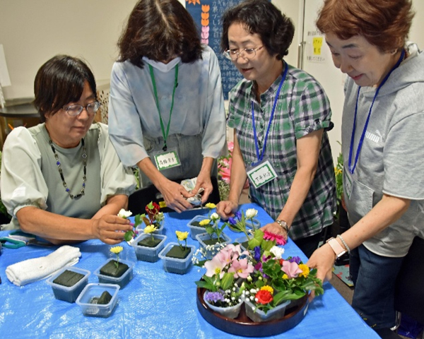 新人からベテランまで同じ花材を使っても各々の個性あふれる作品になる。そんな楽しさがモチベーションになって長く続くようだ。