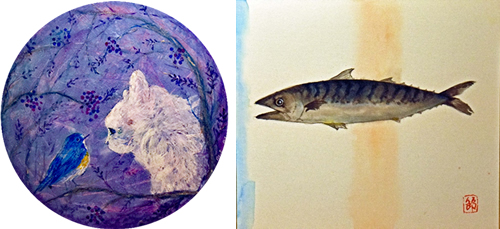 ■写真左:音符で遊ぶような3匹のウサギ