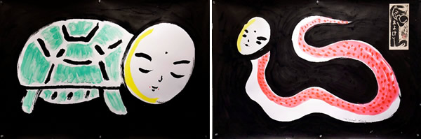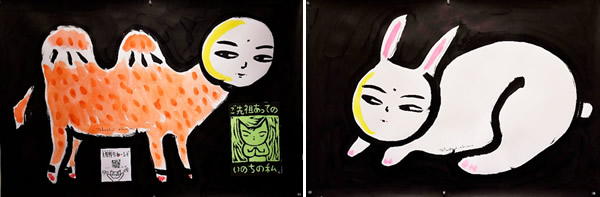 企画展は「次世代に繋ぐ 歩き出す三匹展」と名づけ、小野美巡さん、宗像仁美さん、米丸航生さんの若手3人が参加。3人合わせ市民ギャラリー3いっぱいの絵画計65点を出した。