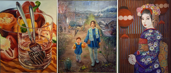 作品全体の大きさや風景、静物、人物のモチーフも様々で、具象的だったり、抽象的だったりの作風もバラエティーに富んでいた。会場を一回りも二回りもしたが、見応えのある作品ばかりだった。
