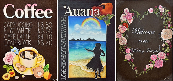 美容専門学校の講師だった頃、息抜きの趣味としてチョークアートを習い始めた。楽しさや奥深さに「魅入られ」て、MCAの講師資格を取るまでになった。