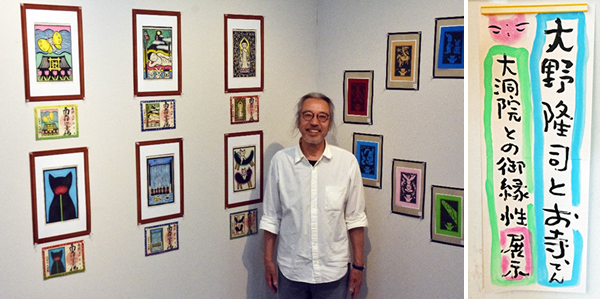 ■写真左:大洞院ギャラリーの作品に囲まれる大野さん